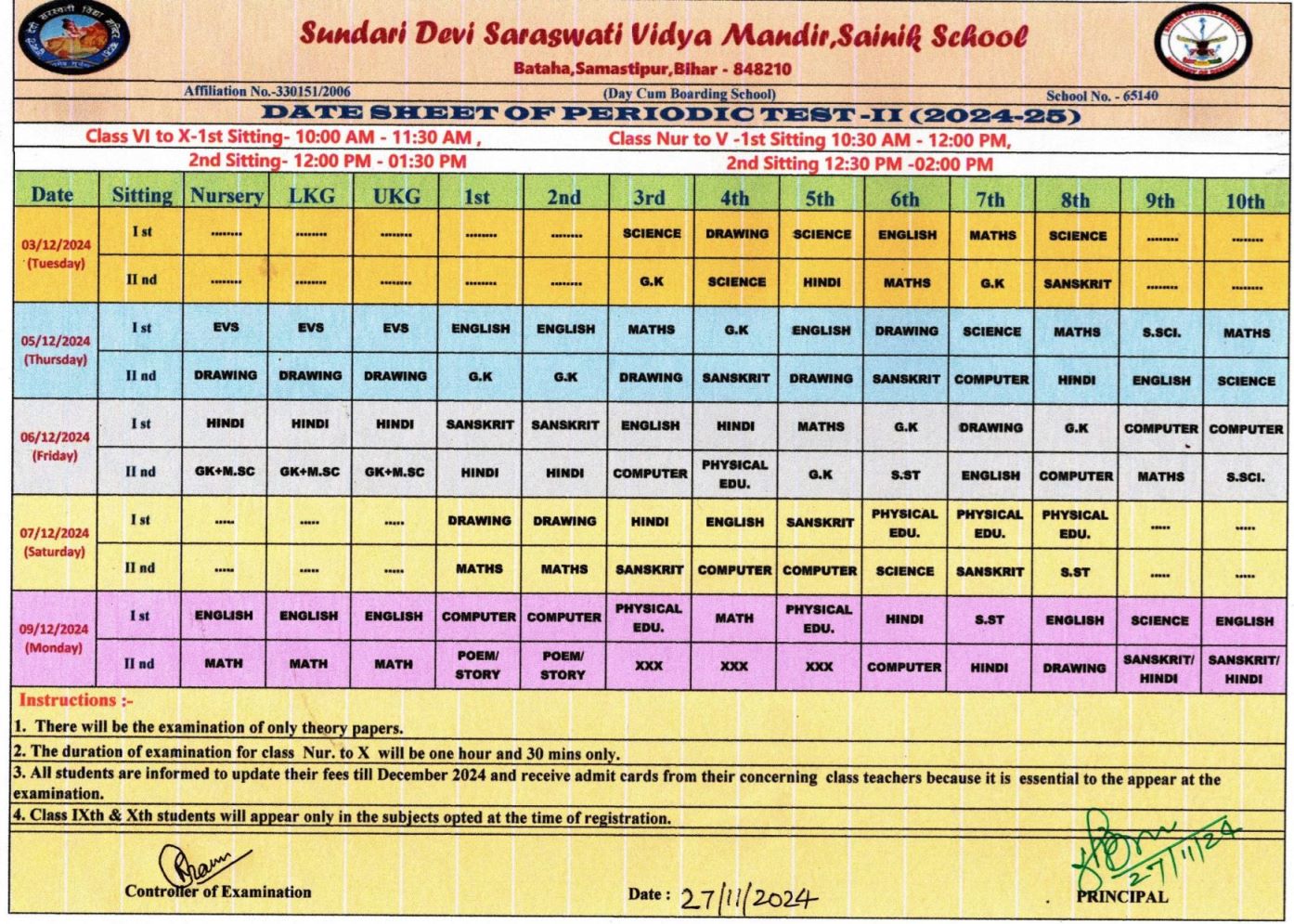 DATESHEET OF PT - 2 (2024-25)