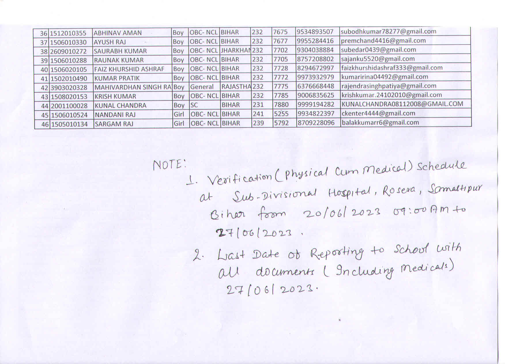 SDSVM Sainik School Admission-2023 Waiting Merit List-2 Medical test :20/06/2023 09:00 27/06/2023 17:30