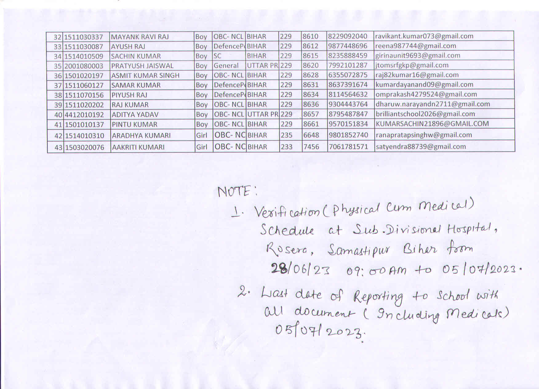 SDSVM Sainik School Admission-2023 Waiting Merit List-3 Medical test :28/06/2023 09:00 to 05/07/2023 17:30
