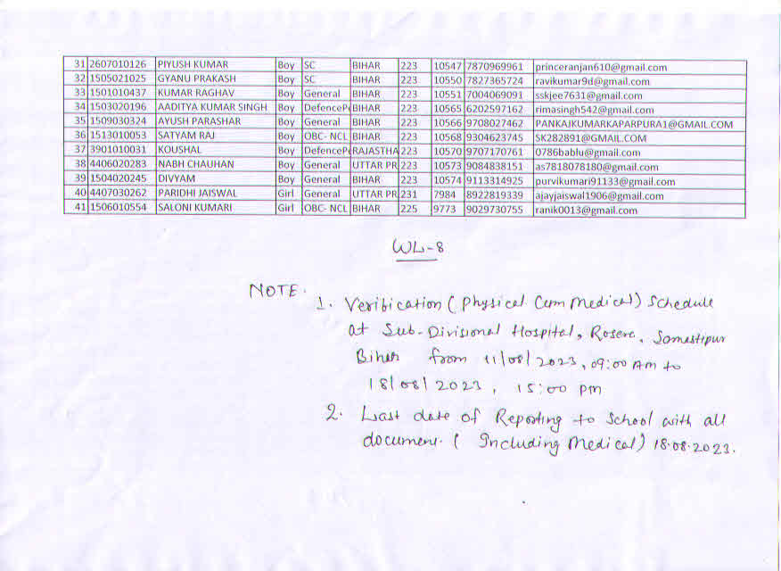 SDSVM Sainik School Admission-2023 Waiting Merit List-8(Page -2) Medical test :11/08/2023 09:00 18/08/2023