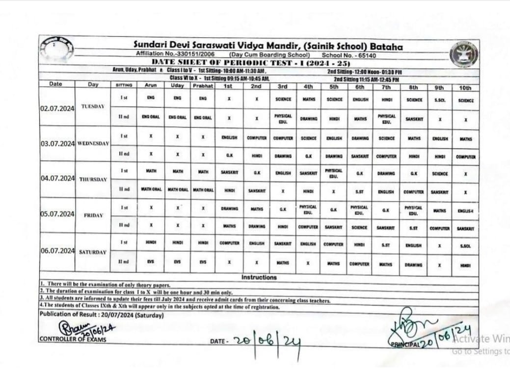 Periodic - I Exam for session 2024-25 will held on 02.07.2024 and end on 06/07/2024.