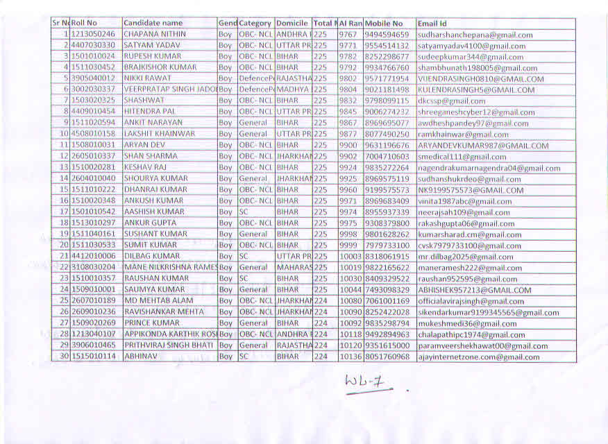 SDSVM Sainik School Admission-2023 Waiting Merit List-7(Page -1) Medical test :03/08/2023 09:00 10/08/2023