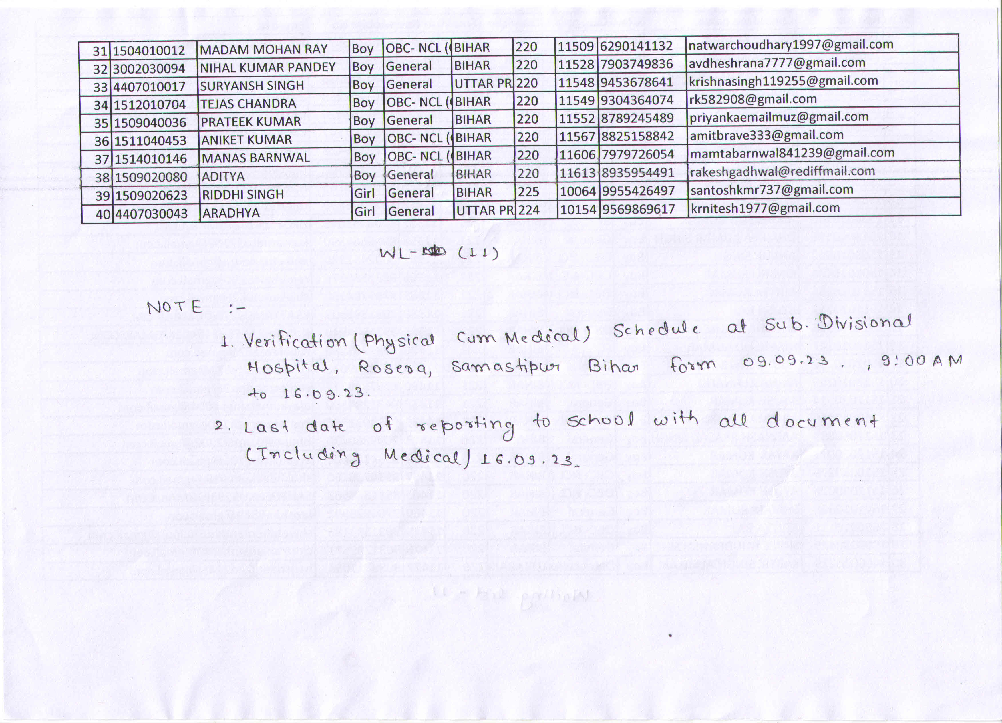 SDSVM Sainik School Admission-2023 Waiting Merit List-11 (Page- 2)Medical test :09/09/2023 09:00 16/09/2023